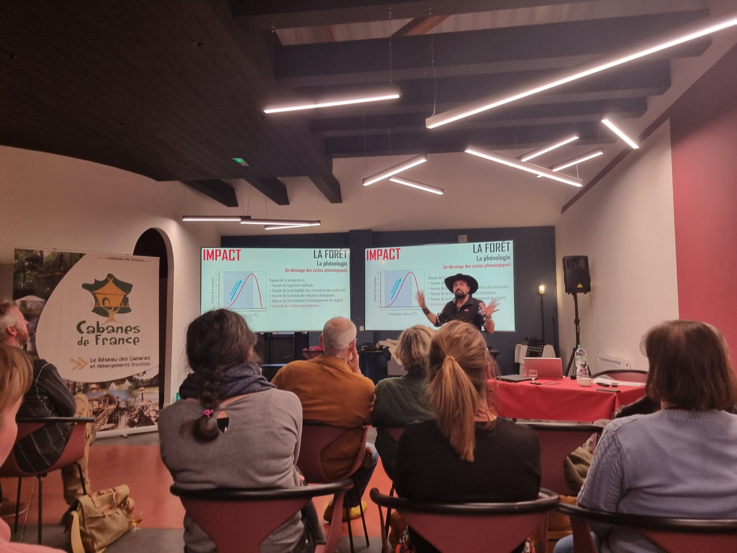 Au programme, de nombreuses interventions : un état des lieux et bilan des actions Cabanes de France, un retour sur la période Covid et une mise en perspective sur les enjeux d’avenir, une analyse des tendances du marché de l’insolite par le Cabinet Alliances. Nous avons également eu le plaisir d’accueillir l’agroclimatologue Serge Zaka qui nous a délivré une intervention passionnante sur les enjeux climatiques pour l’hôtellerie insolite et plus spécifiquement la question des arbres, qu’ils soient d’ornement ou support de cabanes, et les prévisions météorologiques, notamment dans le cas d’orages. La société Bouts de branches était également présente, spécialisée dans la construction et l’entretien des cabanes perchées. Enfin l’agence Azka aura animé des tables rondes ainsi qu’une session plénière sur les principes et enjeux futures en matière de communication digitale. Ces interventions auront été ponctuées de tables rondes sur diverses problématiques propres à la gestion des hébergements insolites mais aussi de moment conviviaux et informels autour de repas et d’une visite du site qui nous accueillait : le Volcan de Lemptegy en Auvergne.