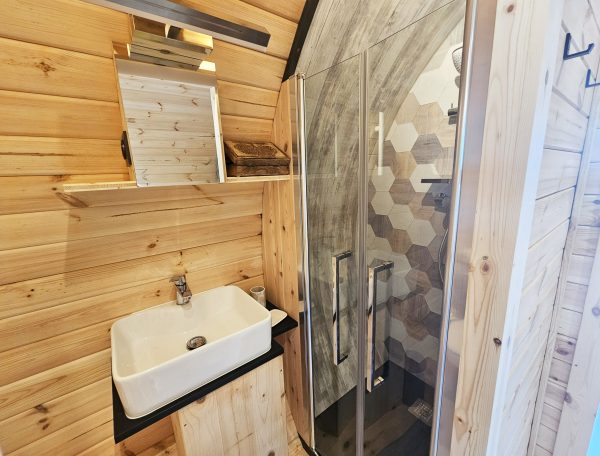 La salle d’eau comprenant douche, toilette et lavabo, assure un confort optimal durant toute votre escapade.