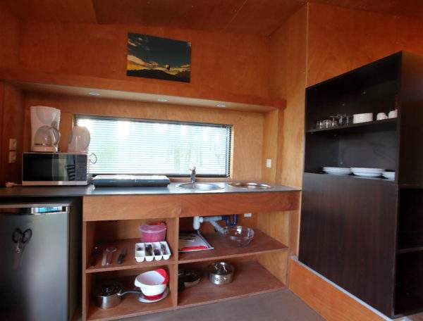 - une kitchenette avec plaques à induction et micro-ondes pour vous permettre de cuisiner en autonomie, une bouilloire, une cafetière, un mini réfrigérateur,