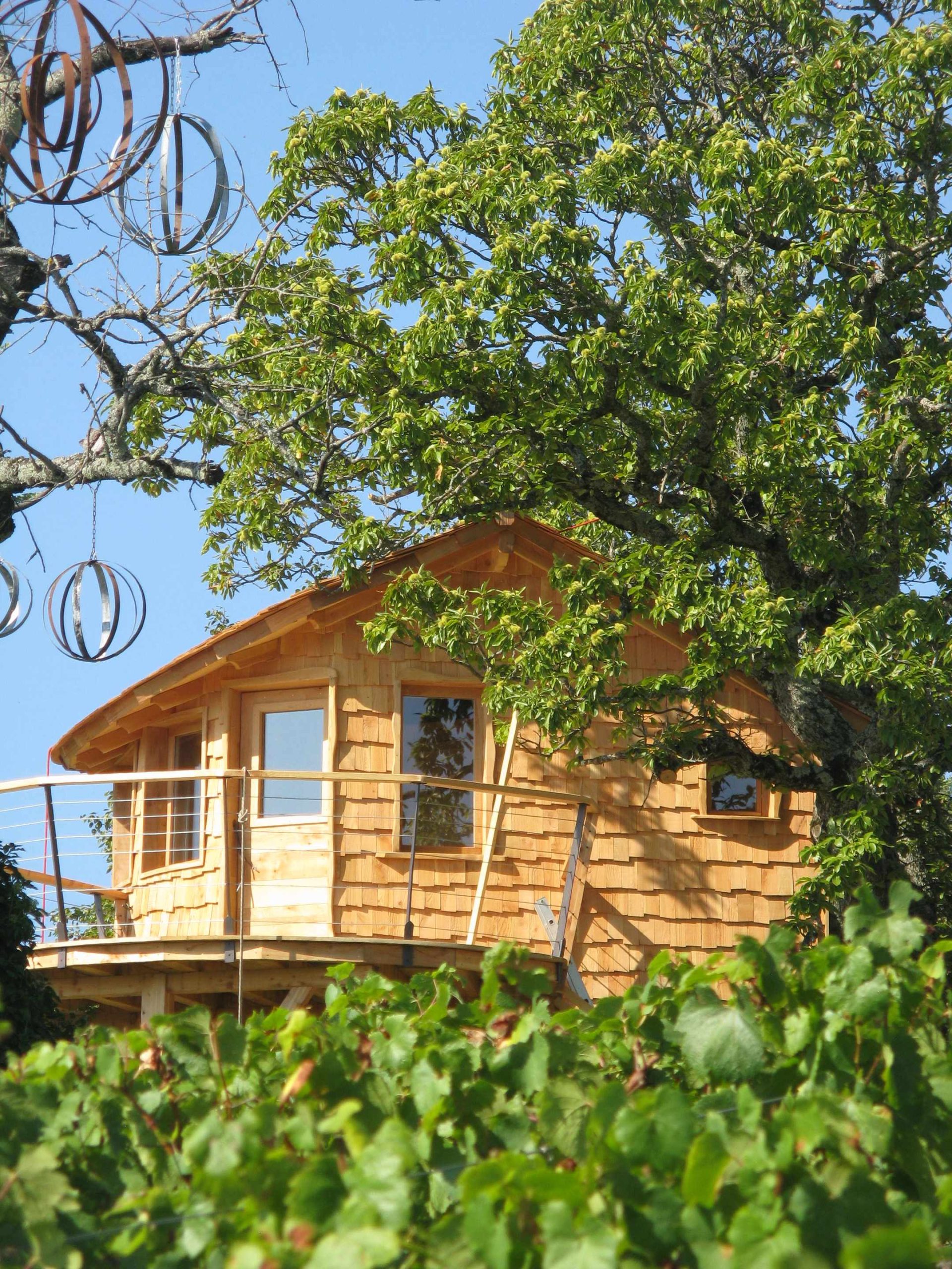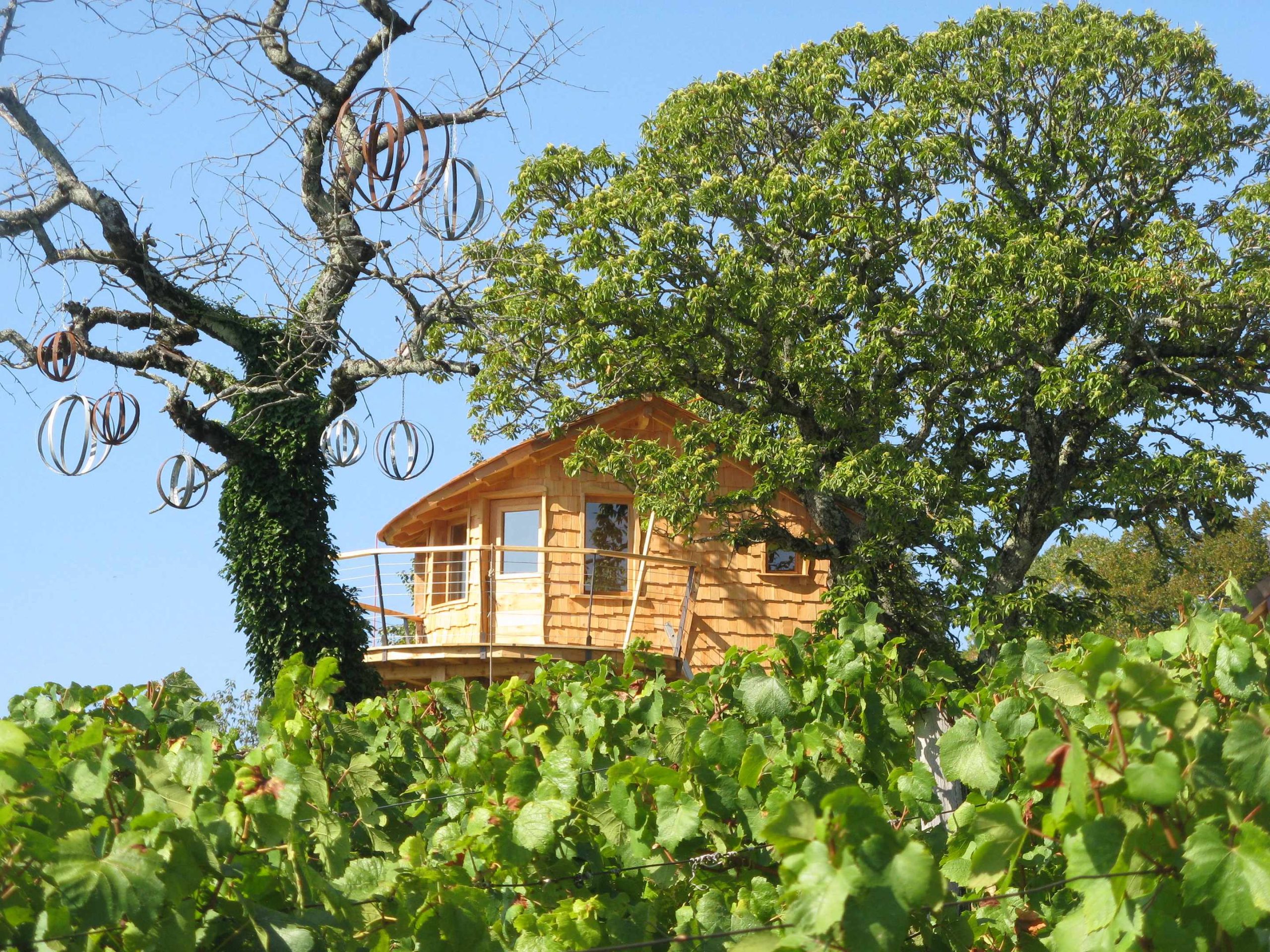 Située dans le parc d’un hectare attenant à la propriété, la cabane “chambre d’hôte”pour deux permet d’être au contact de la nature , au calme. De la spacieuse terrasse , la vue panoramique enchanteresse donne sur le vignoble et village de Château- Chalon ainsi que la plaine. Expérience unique perchée à 4 m de haut dans un espace luxueux. La cabane dans le châtaigner offre tout le confort d’une chambre avec de belles prestations , se composant d’une spacieuse terrasse, une chambre lumineuse permettant du lit de bénéficier du paysage et une luxueuse et confortable salle de bain. Selon la clémence du temps et les envies chacun pourra prendre son petit déjeuner composé de produits locaux bio ou bien encore dormir sur la terrasse à la belle étoile….