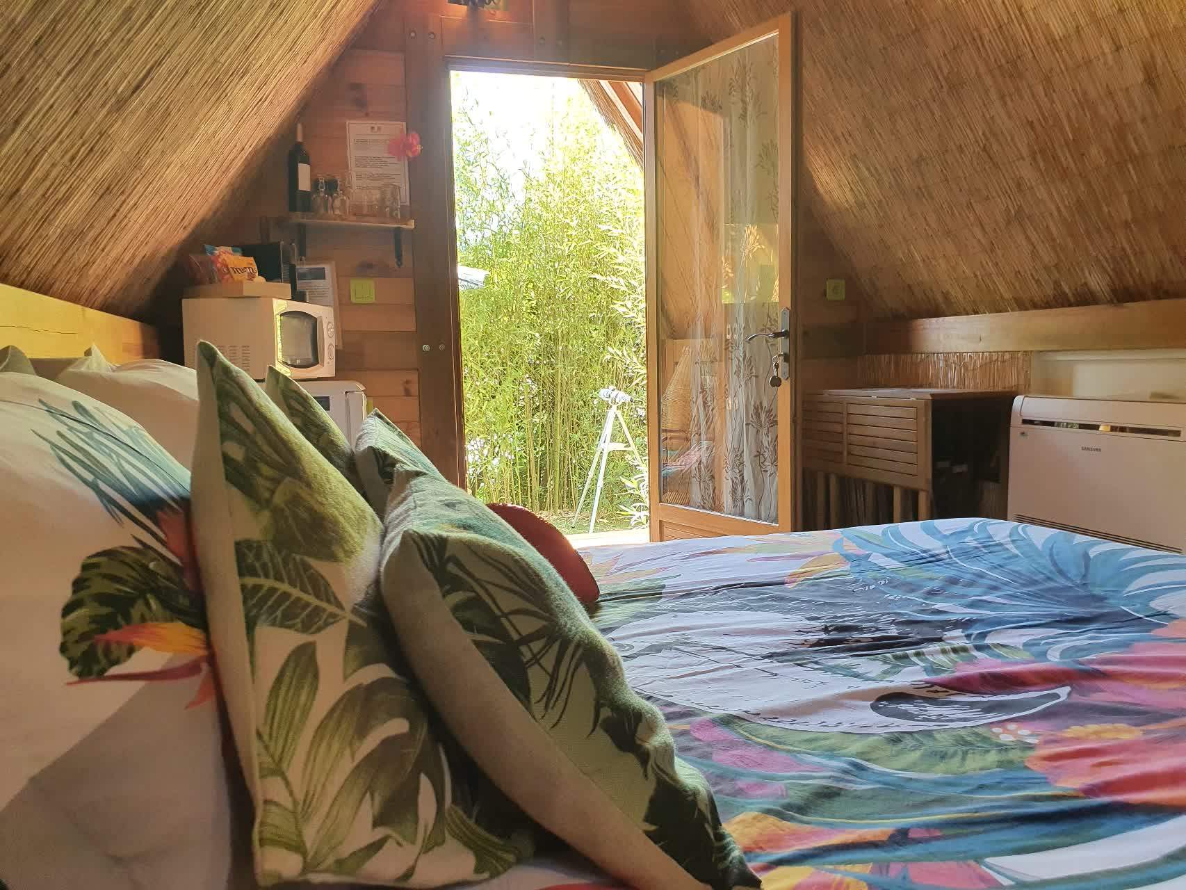 Qu’importe puisque nous vous avons aménagé un univers résolument exotique de 15m² avec des couleurs chatoyantes, du bambou, de la paille et même du sable… sans compter le jacuzzi privatif illimité en extérieur et l’accès direct à notre majestueuse piscine !