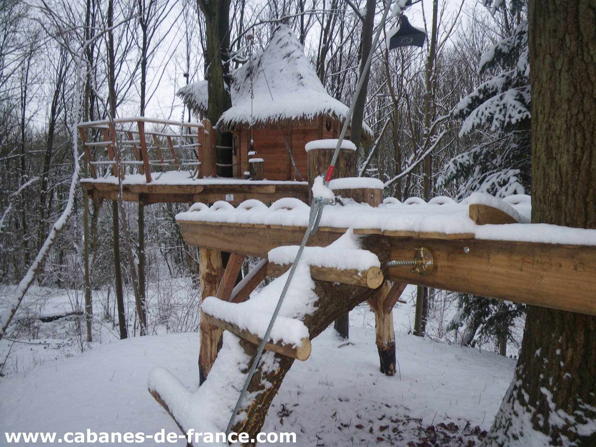 On aime le charme de cette cabane, sa grande terrasse et son accès original.