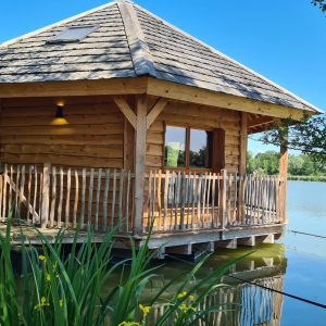 Cabane flottante de forme très originale toute en rondeur, extrêmement bien agencée pour un séjour original en couple au bord de l’eau. Dans ce petit et bel espace, tout est pensé pour votre confort.