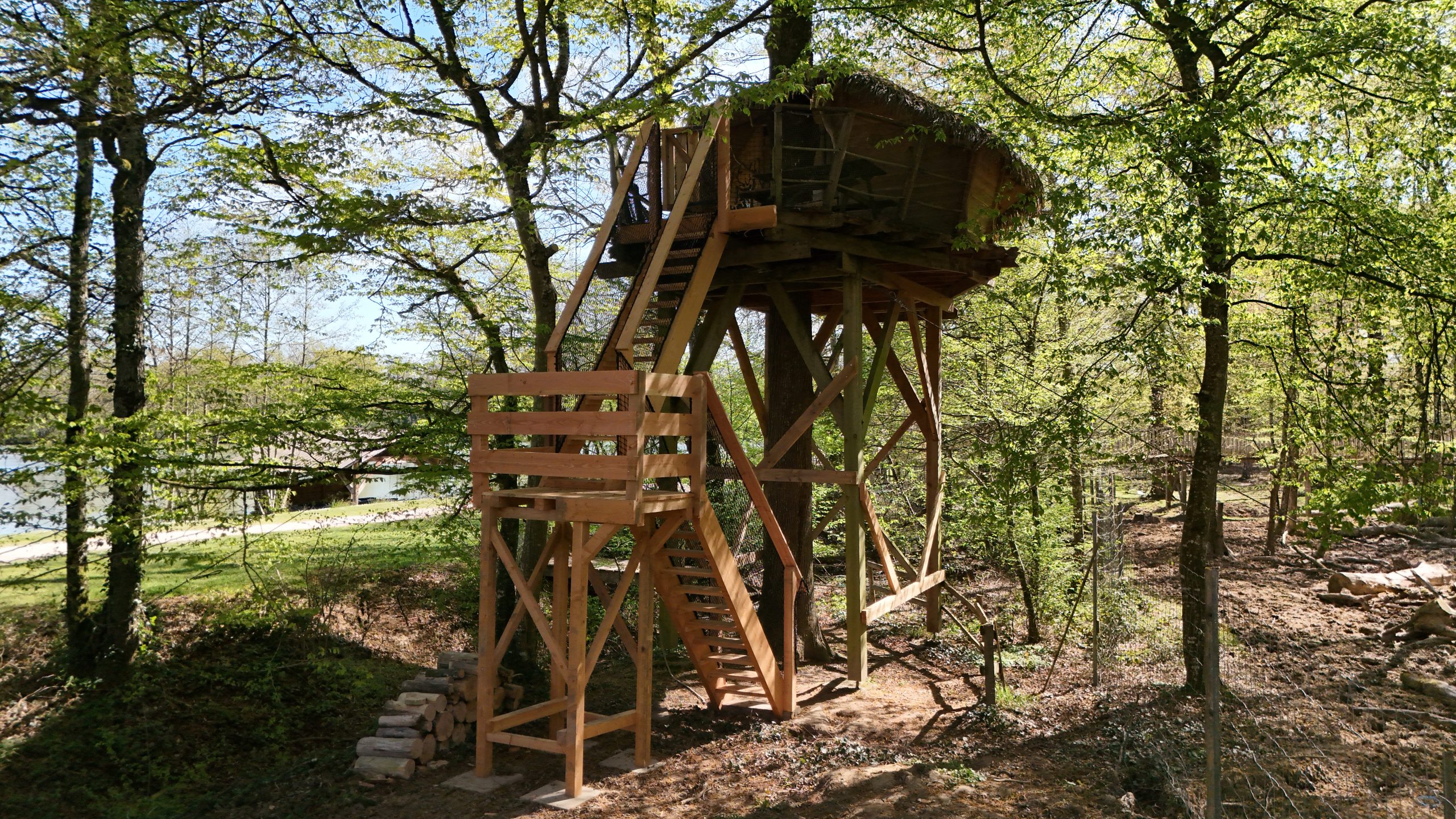 Cette cabane dans les arbres en lisière de forêt pour 4 personnes, est idéale pour un séjour en famille avec des enfants car elle est proche des commodités (salle de bains, jeux pour enfants et autres activités à proximité). Perchée à 6m, vous accéderez à celle-ci par un magnifique escalier en colimaçon, une véritable œuvre architecturale toutefois assez raide. Elle offre une double vue magnifique sur l’étang ainsi que sur le parc des Bisons d’Europe qui se situe juste en dessous, pour un séjour à proximité de ces animaux.
