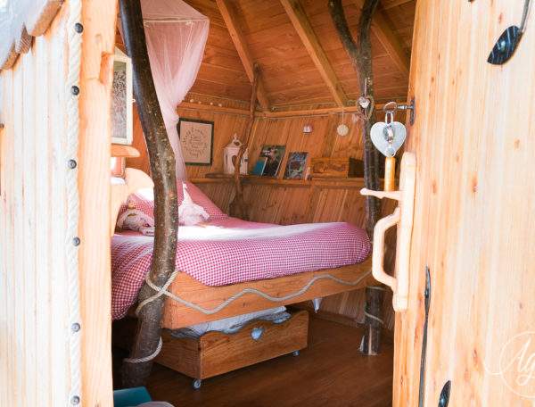 C’est la cabane des amoureux par excellence, idéale pour un séjour insolite et romantique. Accrochée autour d’un chêne centenaire, d’une capacité de 2 personnes (+ un lit junior d’appoint), on y accède par une petite passerelle suspendue et un escalier.
