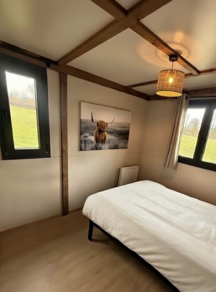 La cabane profite d’un cadre naturel d’exception : elle domine une grande prairie dans laquelle vous pourrez observer paisiblement des vaches highlands, des yacks et des alpagas évoluer dans leur environnement. De plus, elle se situe à quelques pas du bel etang du domaine.