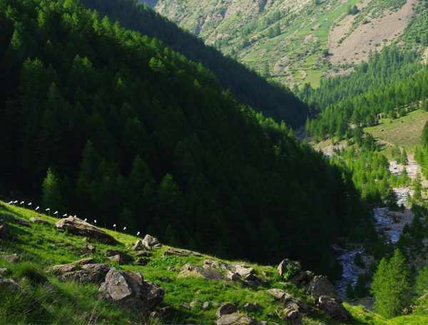 La Cabane du Berger est située au centre du Parcours des Fées (Parcours artistique et poétique sur un sentier de randonnée), avec une vue incroyable sur la vallée de Crévoux et sur la cascade de Razis. Une vue dégagée sur des pelouses d’alpages, la forêt de mélèzes sur le versant sud et la paroi rocheuse aride au sud. Au centre de ce paysage contrasté, les nuits étoilées loin de toute pollution lumineuse, sont assurément somptueuses. La Vallée est orientée Est-Ouest, ce qui procure des couchers et levers de soleil inoubliables.