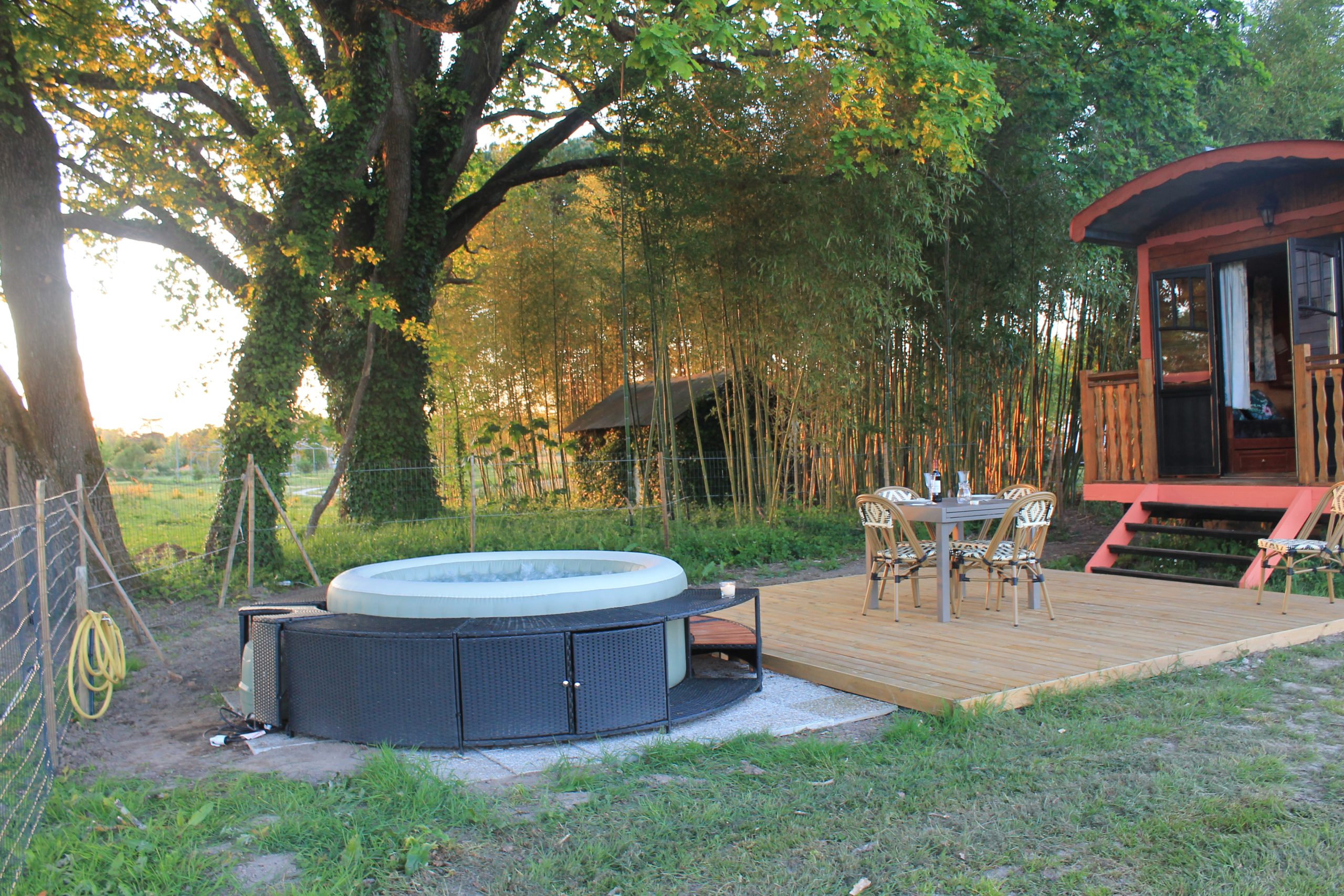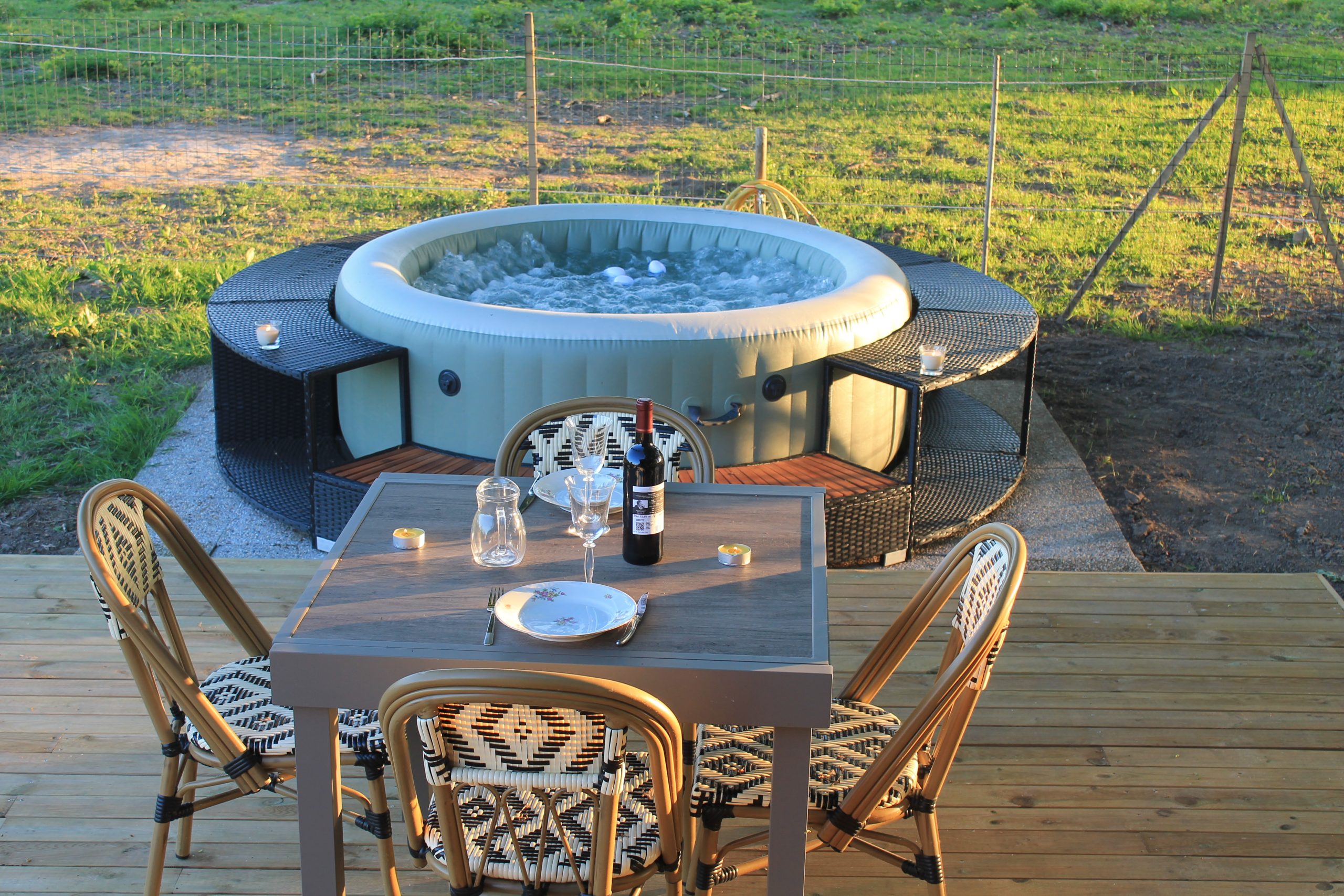 A l’extérieur, un salon de jardin et un spa privatif vous invitent à vous détendre en pleine nature, dans un cadre paisible, à côté de chênes plusieurs fois centenaires.