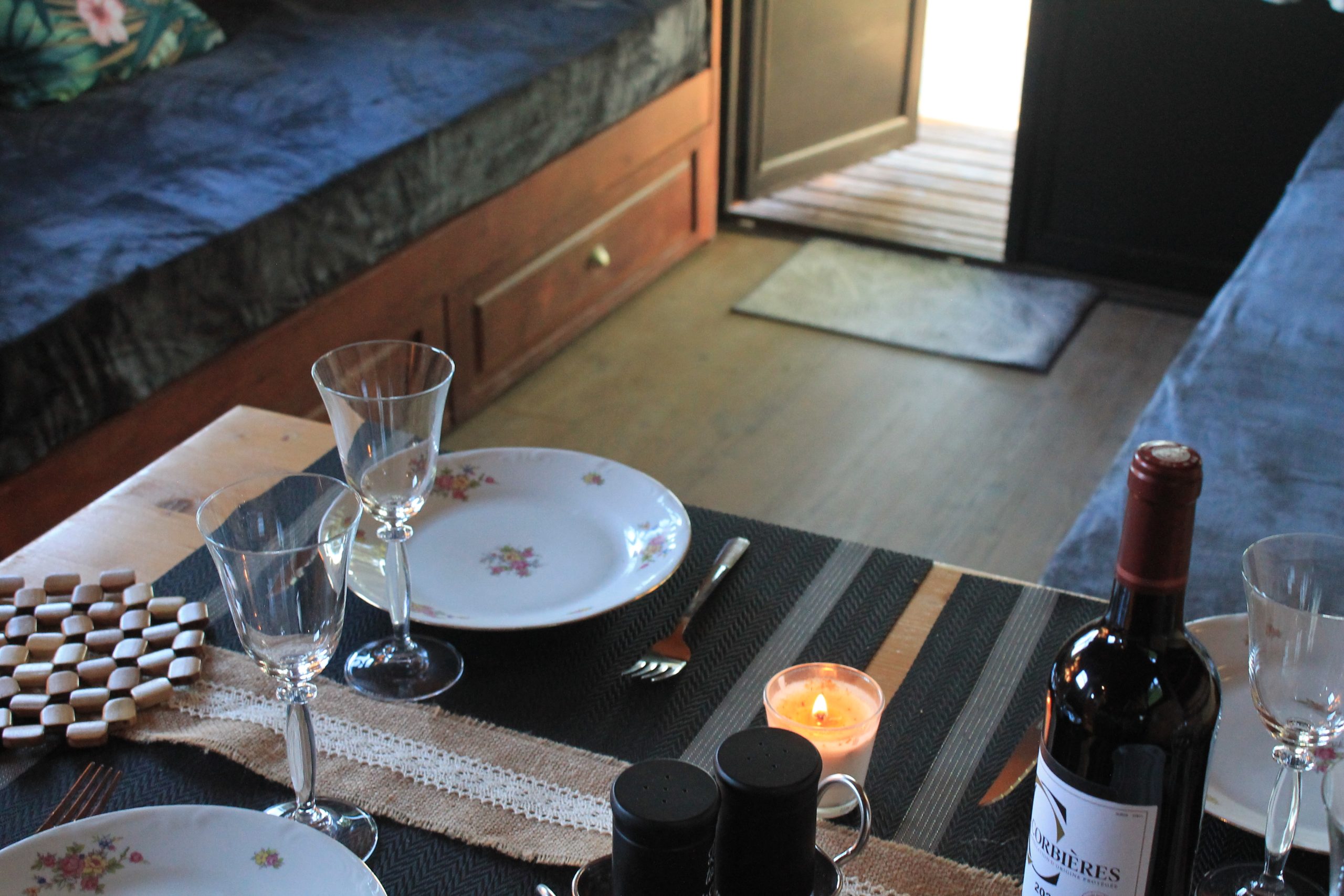 Pensée pour allier confort et autonomie, la roulotte Poète “LA MUSE” propose tout le nécessaire pour que vous puissiez vous concocter de bon petit plat et profiter de moments conviviaux. Vous trouverez également cafetière, bouilloire, mini four, micro onde.