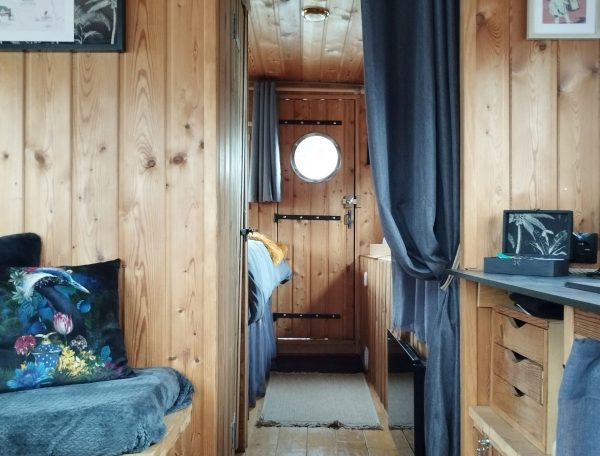 D’une superficie de 15 m², la Toue Charme est soigneusement agencée pour accueillir jusqu’à deux personnes.