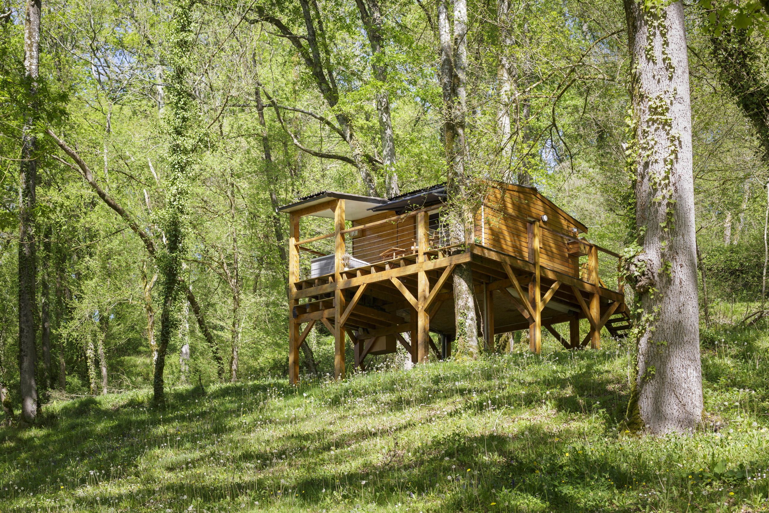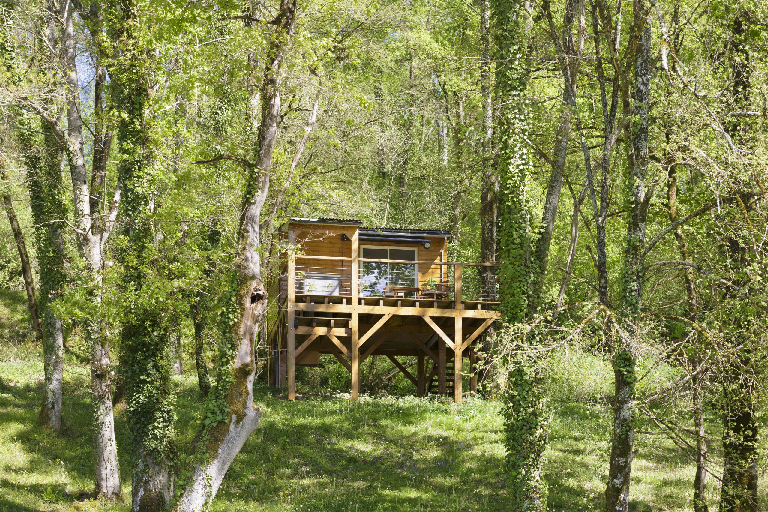 Perchée sur pilotis au cœur de notre domaine naturel, la Cabane du Frêne offre un refuge paisible alliant confort moderne et immersion totale dans la nature.
