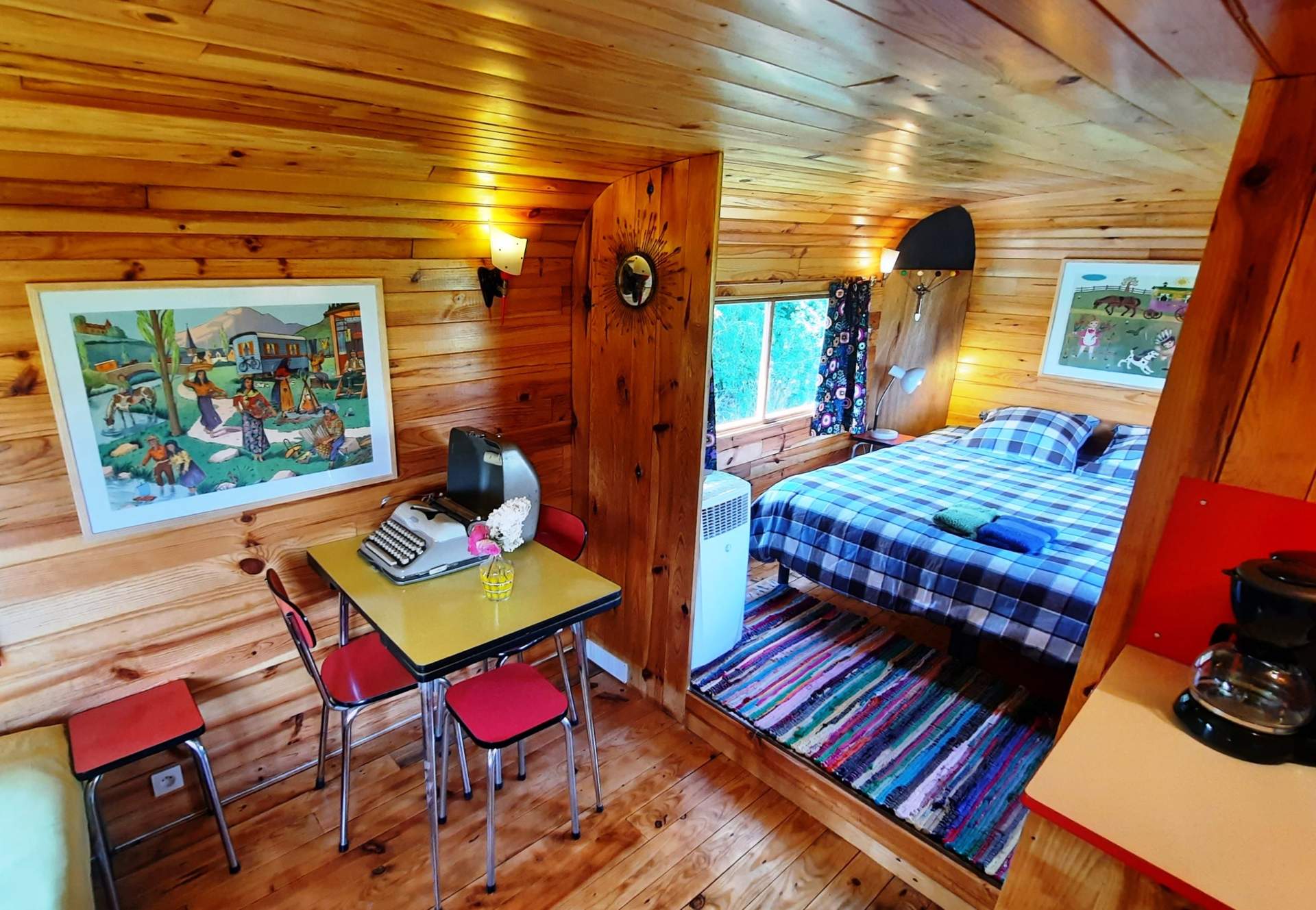 Ancienne roulotte des années 1960, elle a longtemps appartenu au clown du Cirque Médrano ! Pour la déco et l’aménagement, c’est le choix des années Formica. Chaque détail compte beaucoup, de l’interrupteur à la lumière en passant par le mobilier, c’est un dépaysement assuré ! Flash-back aux origines des années Rock&Roll !