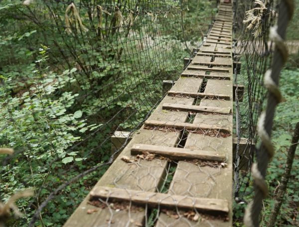 Cabane à 9 mètres de haut, pont tibétain de 25 mètres de long pour 4 personnes.