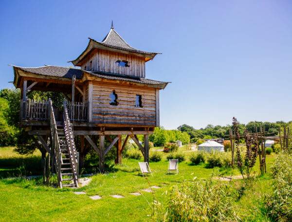 Au Domaine EcÔtelia, nous vous proposons de venir séjourner dans un temple perché à 4m du sol à l’image d’une cabane dans les arbres, inspiré de la Pagode. Profitez de son bain nordique sur la terrasse perchée pour admirer le panorama exceptionnel de la nature environnante. Ce temple perché, unique en France, a été construit sur mesure et entièrement en bois par des compagnons charpentiers. Agrémenté de son jardin japonais et équipé d’un beau mobilier de style asiatique, vous apprécierez ses prestations haut de gamme (cave à vin, bain nordique), tout en vivant une parenthèse hors du temps !
