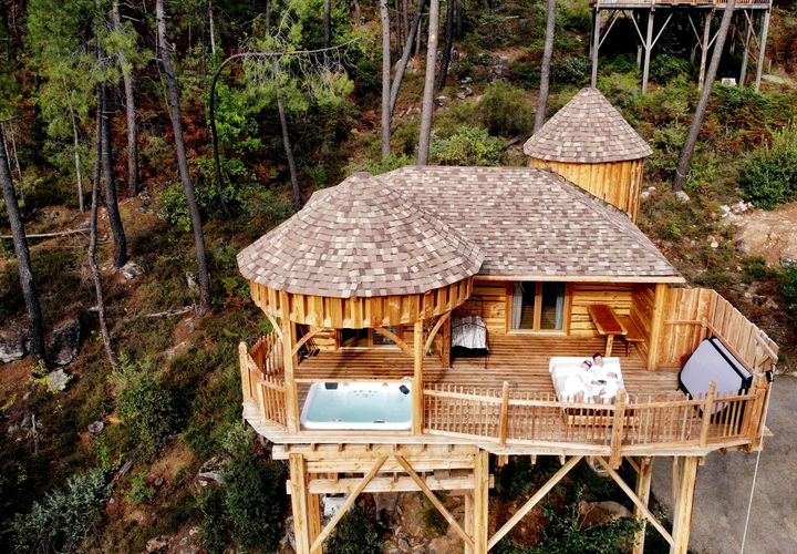 Nichées au cœur de l’Ardèche Méridionale, à la lisière du Gard, au sein des majestueuses Cévennes, nos somptueuses cabanes de luxe vous accueillent. Fabriquées avec amour à partir de pins douglas, provenant d’une filière bois locale, chacune d’elles incarne l’harmonie parfaite entre le confort absolu et le respect de la nature environnante. Perchées à plus de 6 mètres de hauteur, ces merveilles architecturales offrent un havre de paix où règne une atmosphère envoûtante.