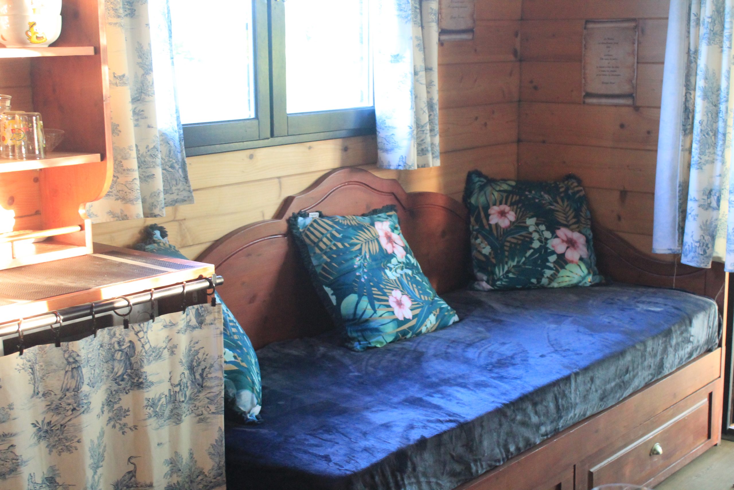 Des équipements complémentaires à votre roulotte sont accessibles à proximité, une armoire privative sécurisée pour vos affaires volumineuses, ainsi qu’un réfrigérateur et un congélateur partagés, particulièrement utiles en complément du petit frigo de la roulotte.