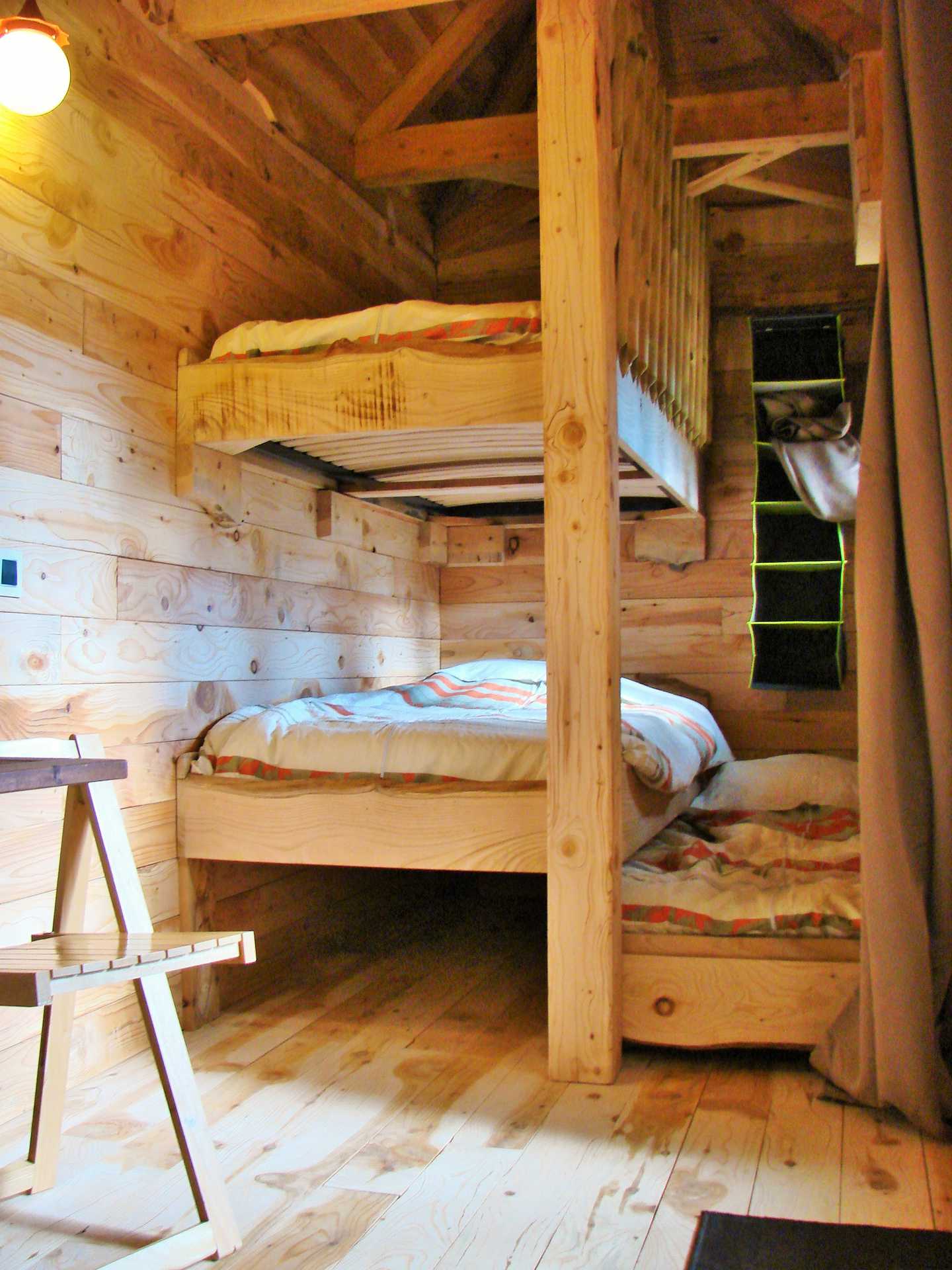 Pour une personne ou enfant supplémentaire, un lit d’appoint peut être installé dans chaque cabane, le tarif petit déjeuner inclus est de 15 euros.