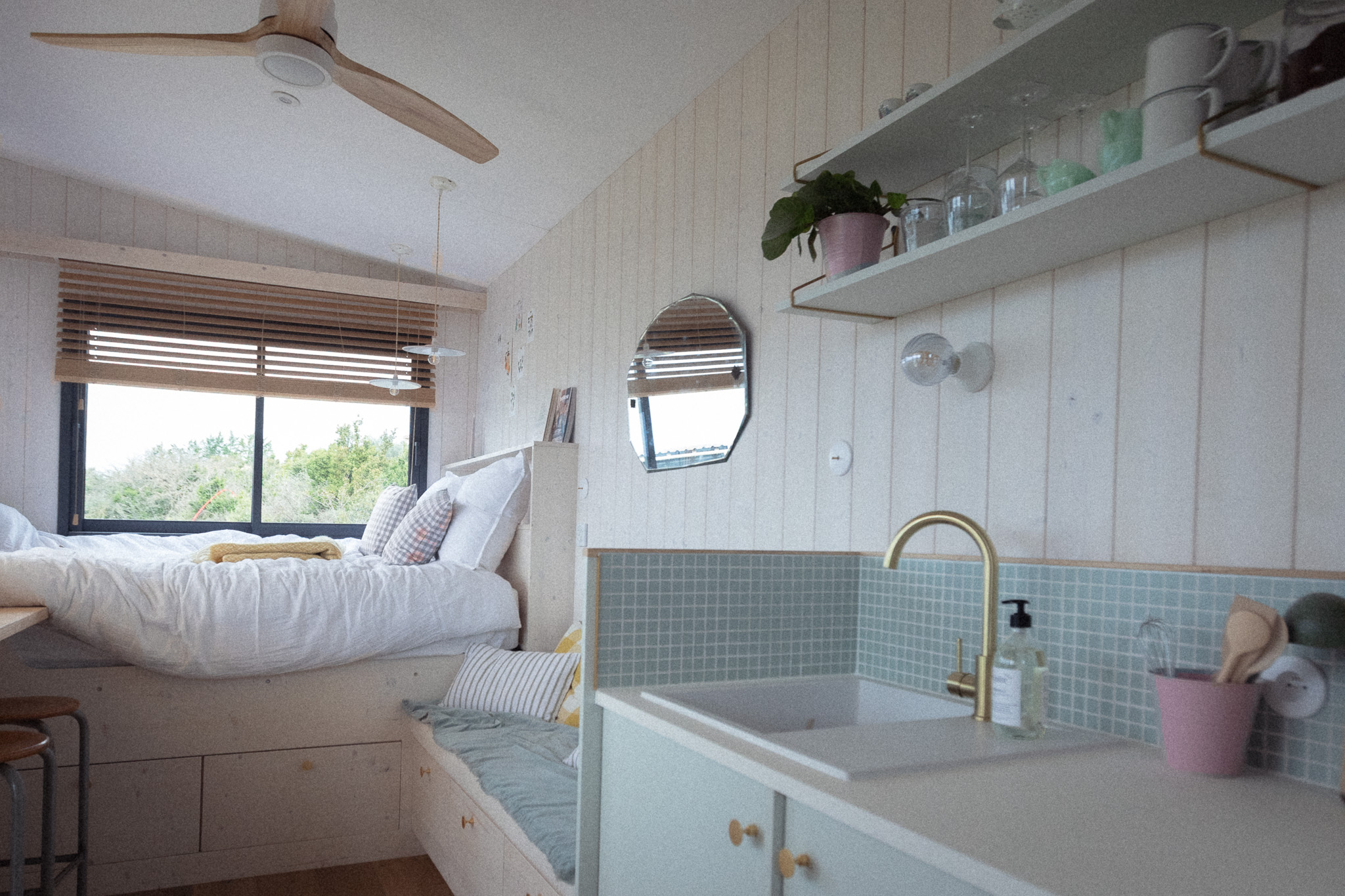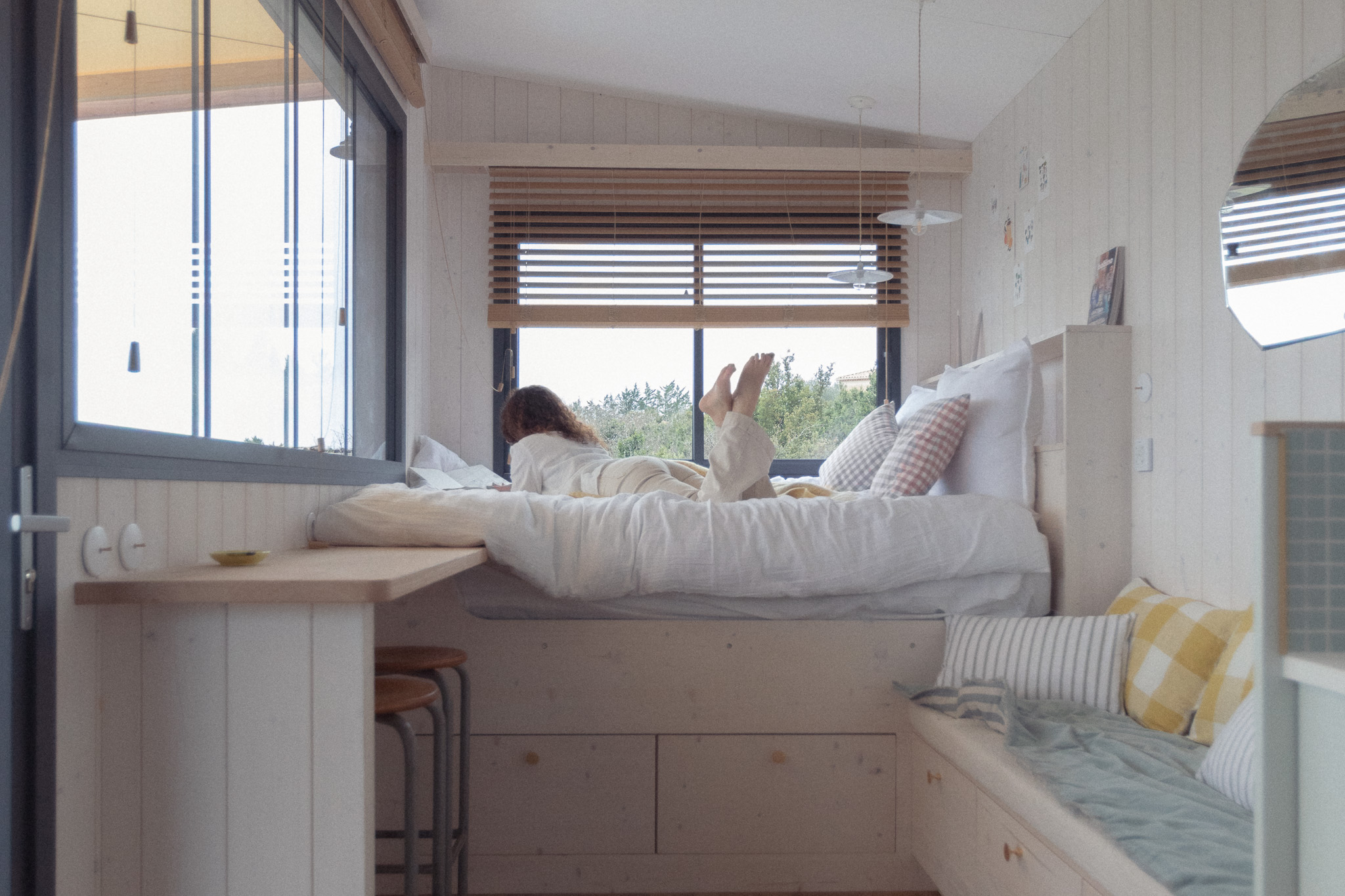Imaginé comme un refuge confortable et intimiste, le lodge allie le charme de l’hébergement insolite au confort d’un séjour cosy en pleine nature. À l’intérieur, tout a été pensé pour créer une atmosphère douce et chaleureuse, propice à la détente et aux moments partagés. La cuisine entièrement équipée vous permet de préparer de bons repas sur place, et sur demande, un panier petit-déjeuner peut être livré directement sur votre terrasse pour commencer la journée en toute sérénité.