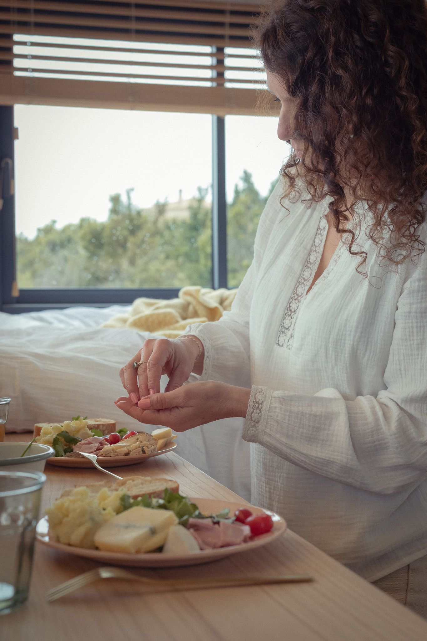En extra, les petits déjeuners sont proposés sur demande, préparés avec des produits locaux et livrés directement sur votre terrasse pour bien commencer la journée.