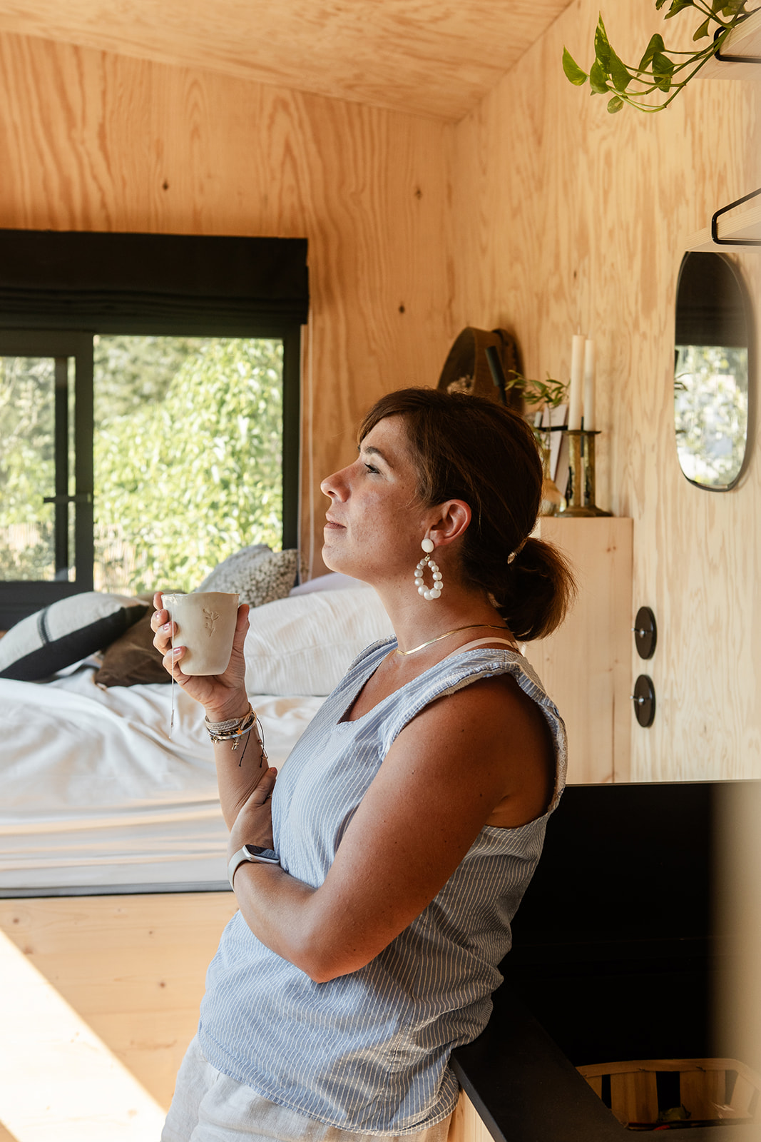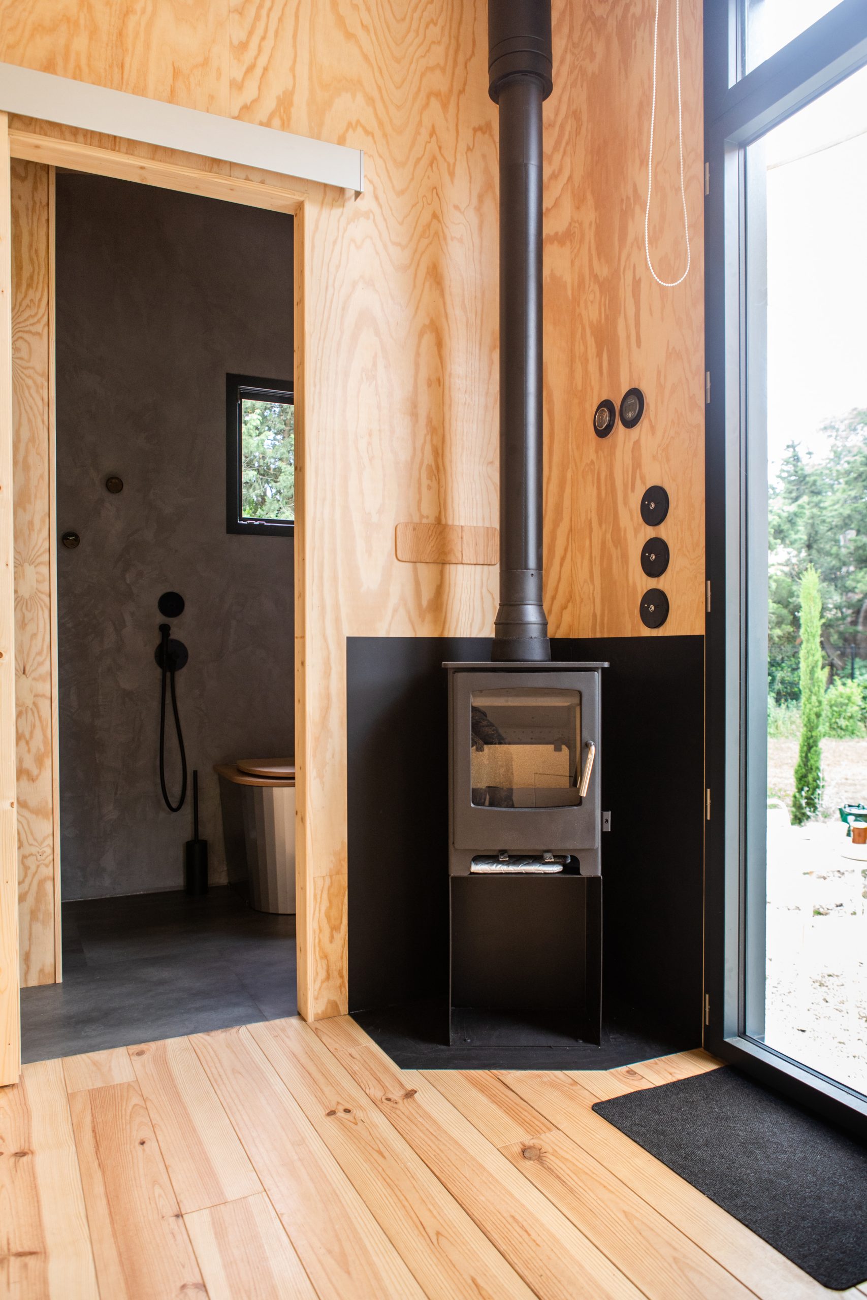 À l’intérieur, l’atmosphère est chaleureuse et épurée : matières naturelles, teintes douces et lumière traversante créent un cocon apaisant. Sur la terrasse, le jacuzzi privatif utilisable toute l’année promet de délicieux moments de détente, face à la nature.
